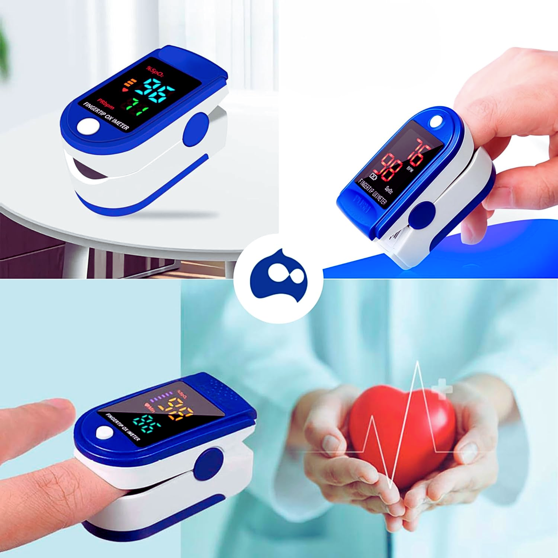 Oxímetro de Pulso: Precisión y Velocidad Obtén lecturas instantáneas y precisas de la saturación de oxígeno en sangre (SpO2) y tu pulso. Su pantalla LED de alta definición te garantiza resultados claros incluso en la oscuridad. Con un diseño compacto, es perfecto para llevarlo a cualquier lugar.